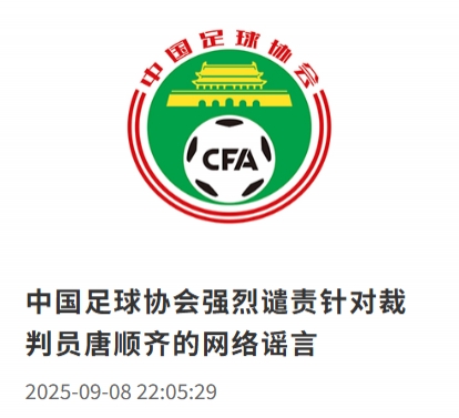 09月08日讯 足协官方发布了一则声明,对网络上称裁判员唐顺齐“因心梗去世”的谣言表示强烈谴责。
