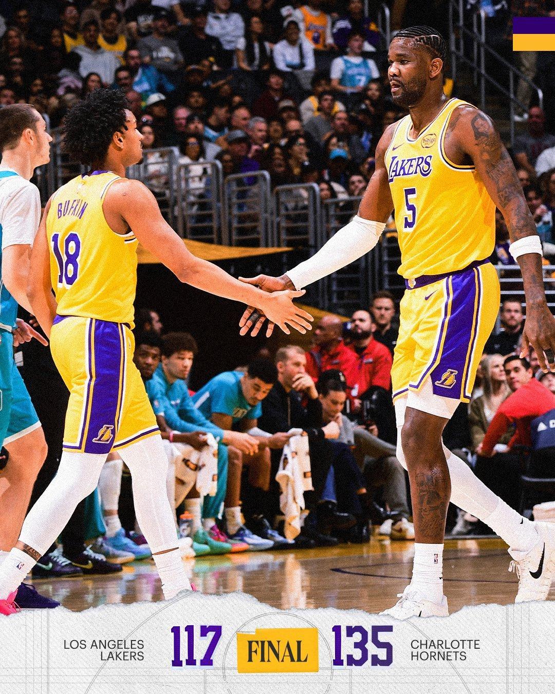 迪亚巴特抢下前场篮板,鲍尔命中远投为黄蜂止血,詹姆斯远投不进,范德比尔特抢下前场篮板,詹姆斯被米勒抢断。鲍尔又中3分球,距离终场仅剩90秒,湖人落后16分并请求暂停。两队都换上了板凳席末端的球员,比赛就此失去了悬念。最终,黄蜂135比117完胜湖人,拒绝了17分逆转。