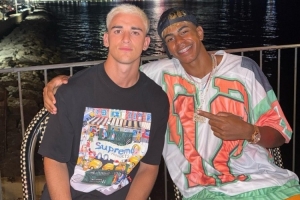 加维正在度假,他在社交媒体上晒出与队友亚马尔的合照,并配上了红心表情符号,他浅金色的发色引人注目。